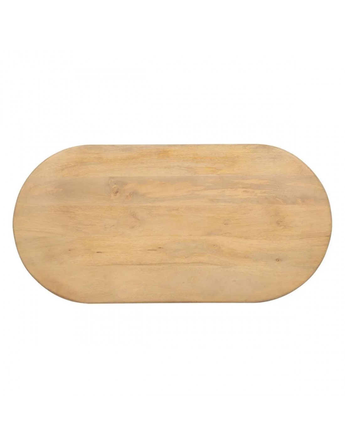 A Mesa de Centro BULMA 120 cm em Madeira de Manga Natural é uma peça-chave na decoração da sua sala. O seu design oval evita cantos rígidos e cria fluidez visual, enquanto a madeira de manga oferece um toque natural, quente e atemporal.