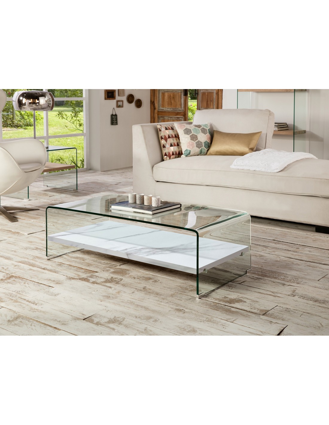 Mesa de centro SONOMA: design sofisticado com vidro curvado e mármore branco