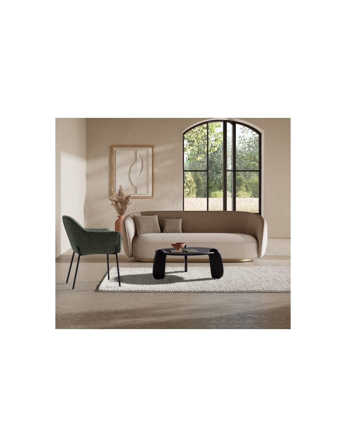 Para garantir equilíbrio visual, a mesa deve ocupar cerca de 50% a 70% do comprimento do sofá. Com 80 cm, a TAMIRA adapta-se facilmente a configurações standard.