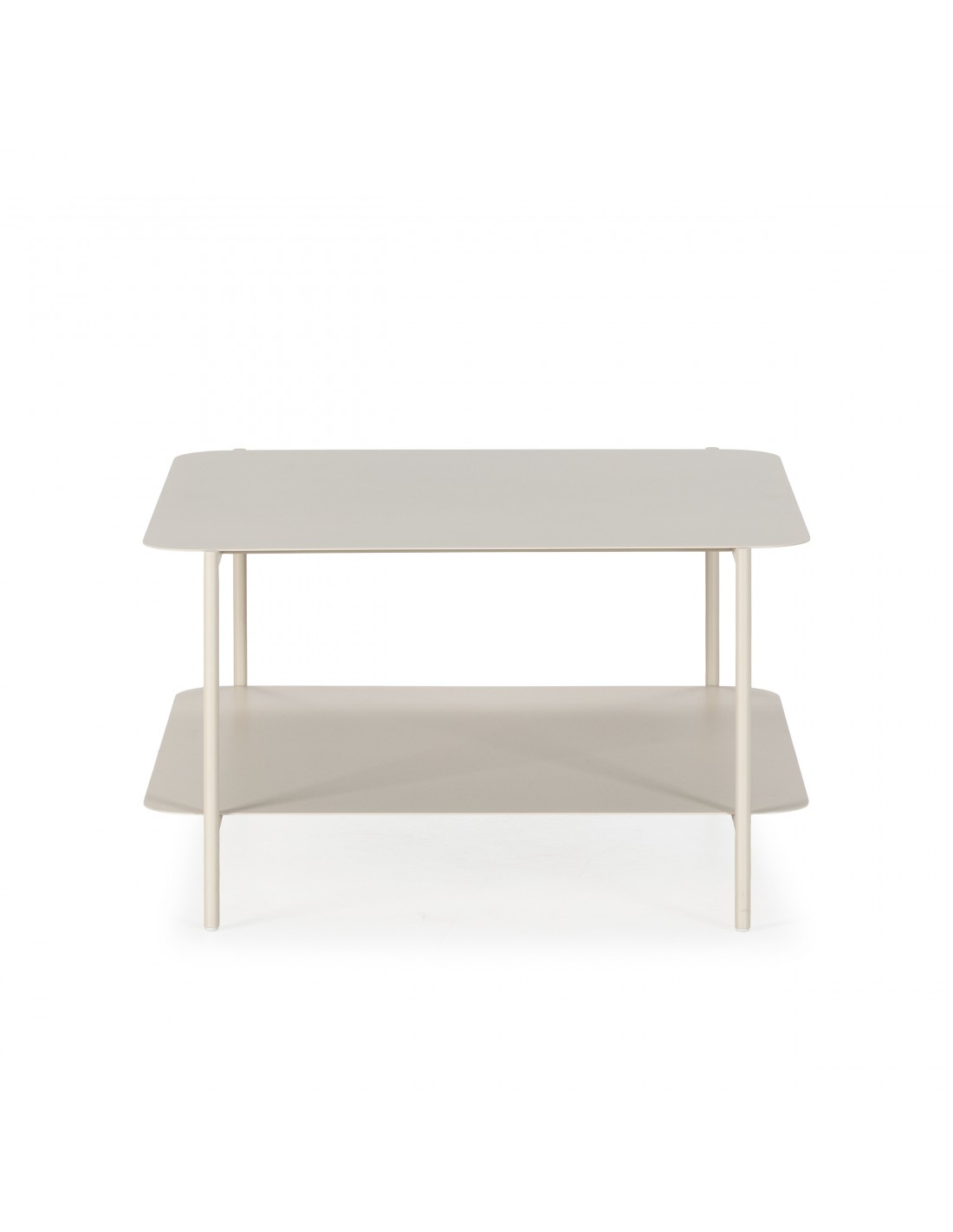 A Mesa de Centro de design com duplo prateleira, BEATRIX Creme em Metal 73x70x40 cm é a escolha ideal para quem procura um móvel moderno, resistente e funcional. A sua estrutura totalmente metálica em tom creme aporta luminosidade ao espaço, enquanto o duplo nível aumenta a capacidade de arrumação sem sobrecarregar visualmente a sala.