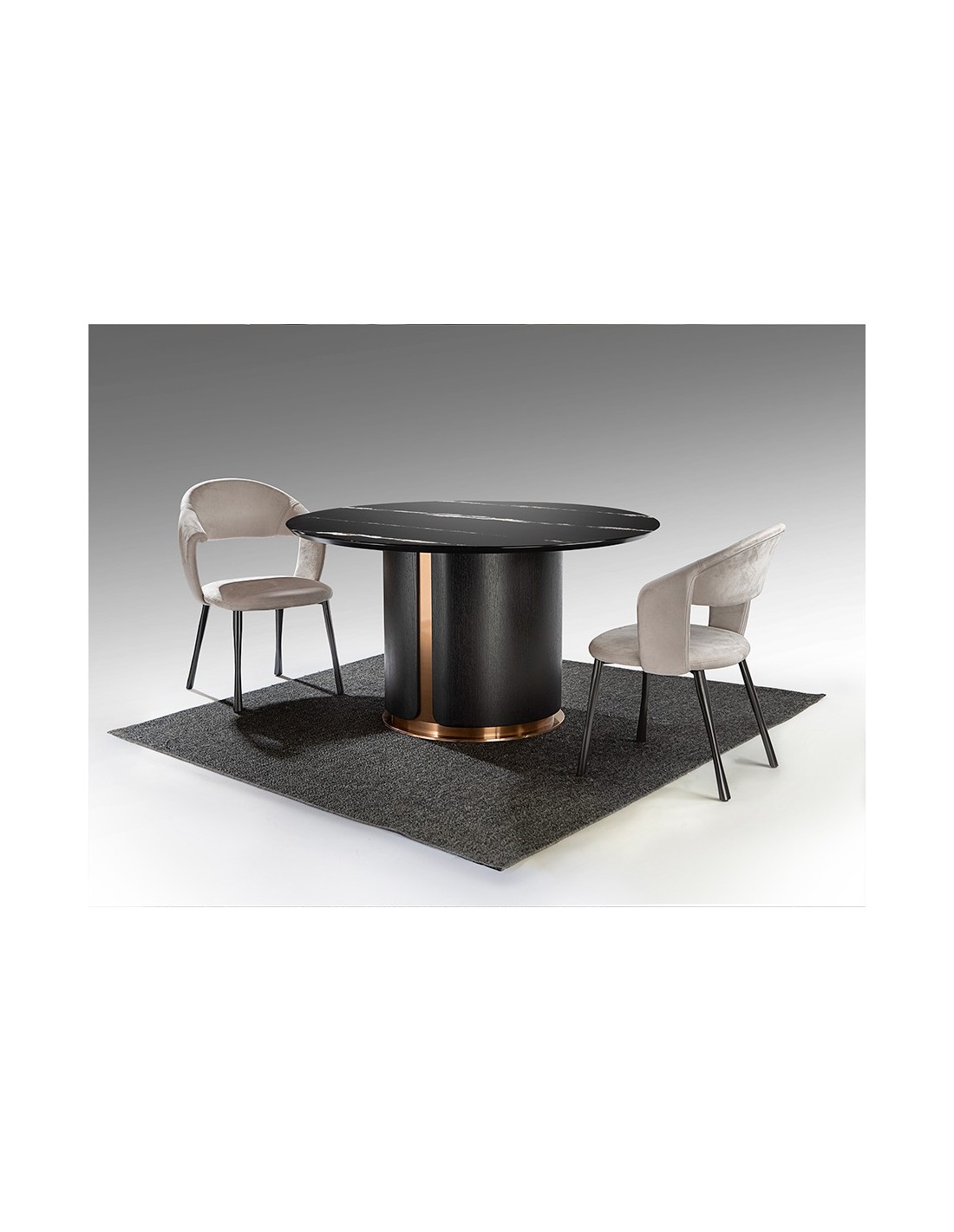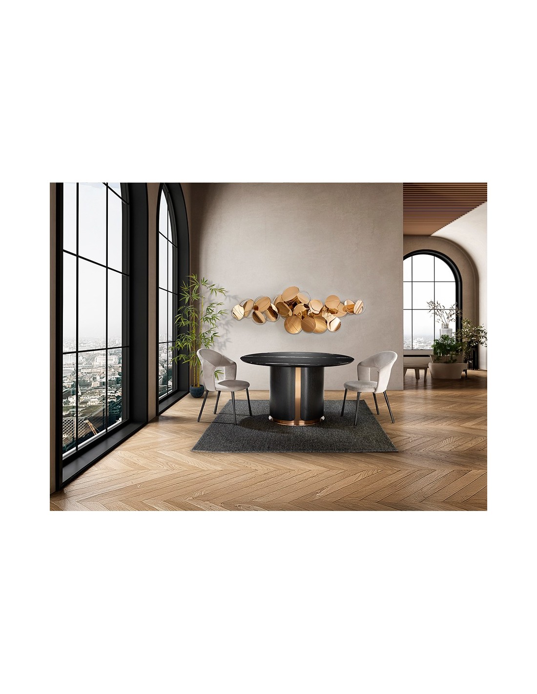 A Mesa de Jantar Redonda ZOLO de 135 cm, em Mármore e Carvalho Escuro com Base Dourada Rosa é muito mais do que um simples móvel. É uma peça central que transforma qualquer sala de jantar num ambiente sofisticado e acolhedor. Ideal para famílias modernas e amantes de design, alia materiais nobres, funcionalidade e estética de alto nível.