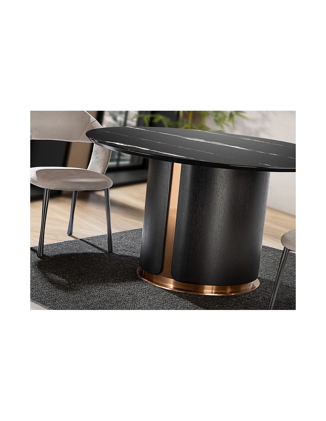 | ZOLO 135 cm | Mármore, carvalho, aço dourado | Luxuoso/Contemporâneo | 6–8 pessoas | Design premium e exclusivo |