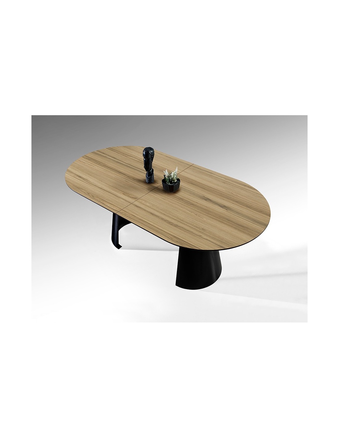 A Mesa de Jantar Extensível CAPRI é perfeita para quem deseja combinar estética natural, resistência e funcionalidade num só móvel. O seu tampo em MDF com melamina de alta resistência e acabamento efeito madeira transmite aconchego visual, enquanto a estrutura em metal preto fosco garante robustez e estabilidade.