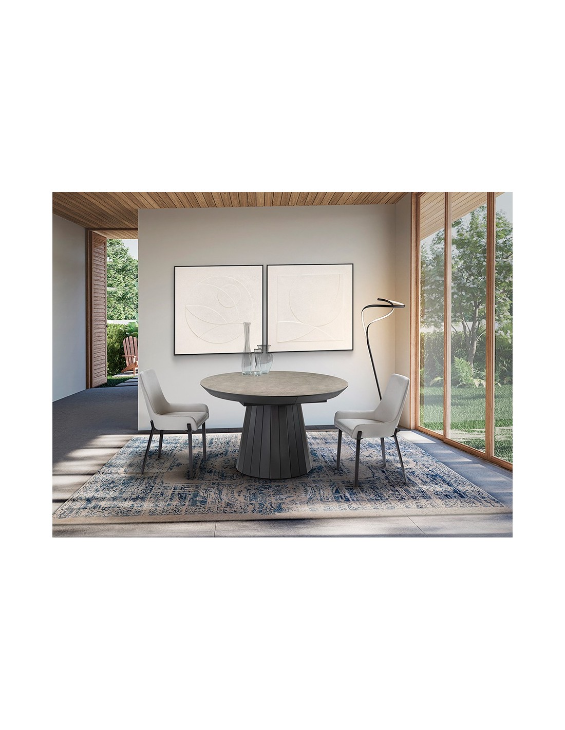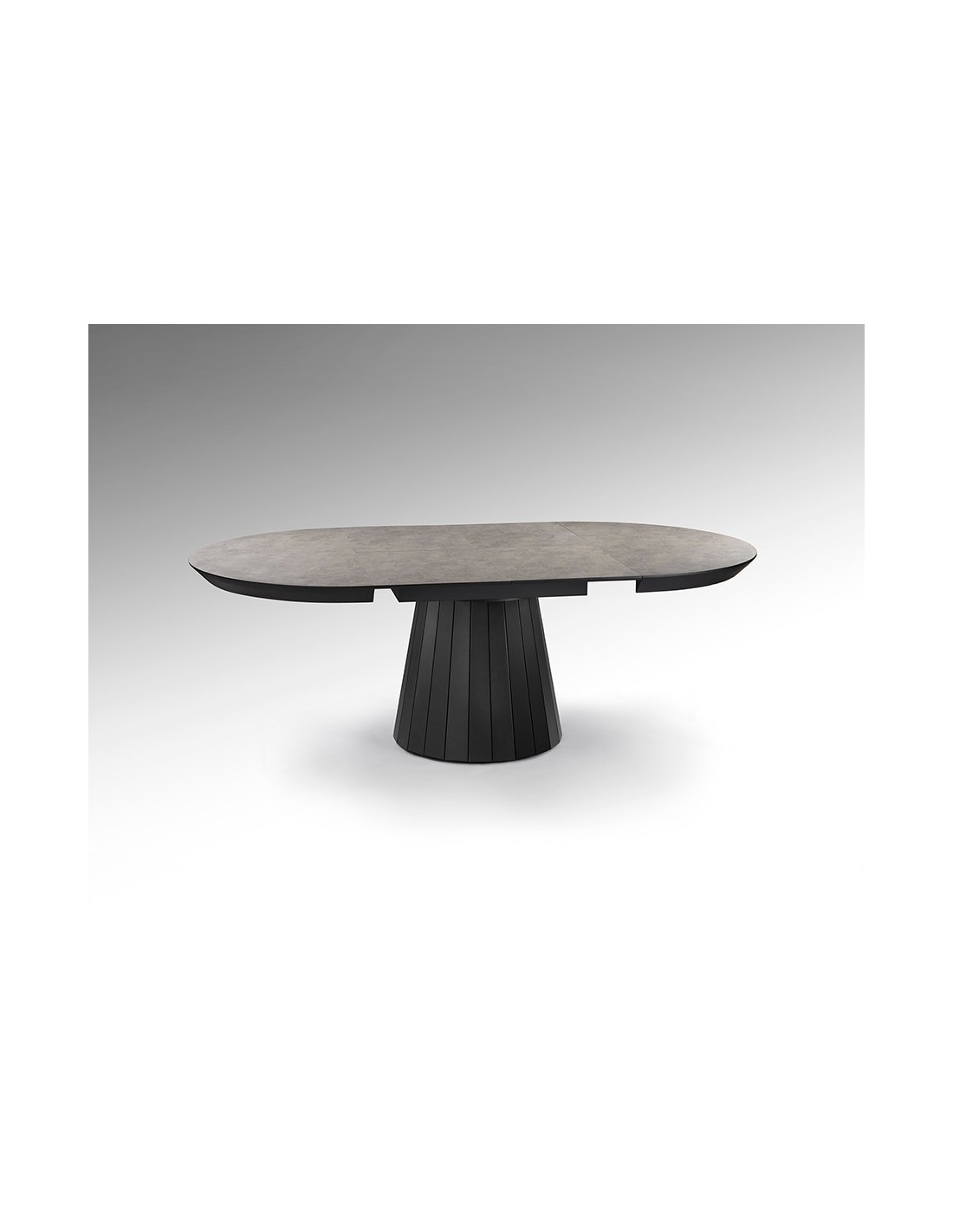 A Mesa de Jantar Extensível KORIA destaca-se por oferecer design contemporâneo, funcionalidade inteligente e materiais resistentes. Com um elegante tampo em efeito pedra mate e estrutura em preto fosco, esta mesa encaixa facilmente em ambientes modernos e minimalistas.