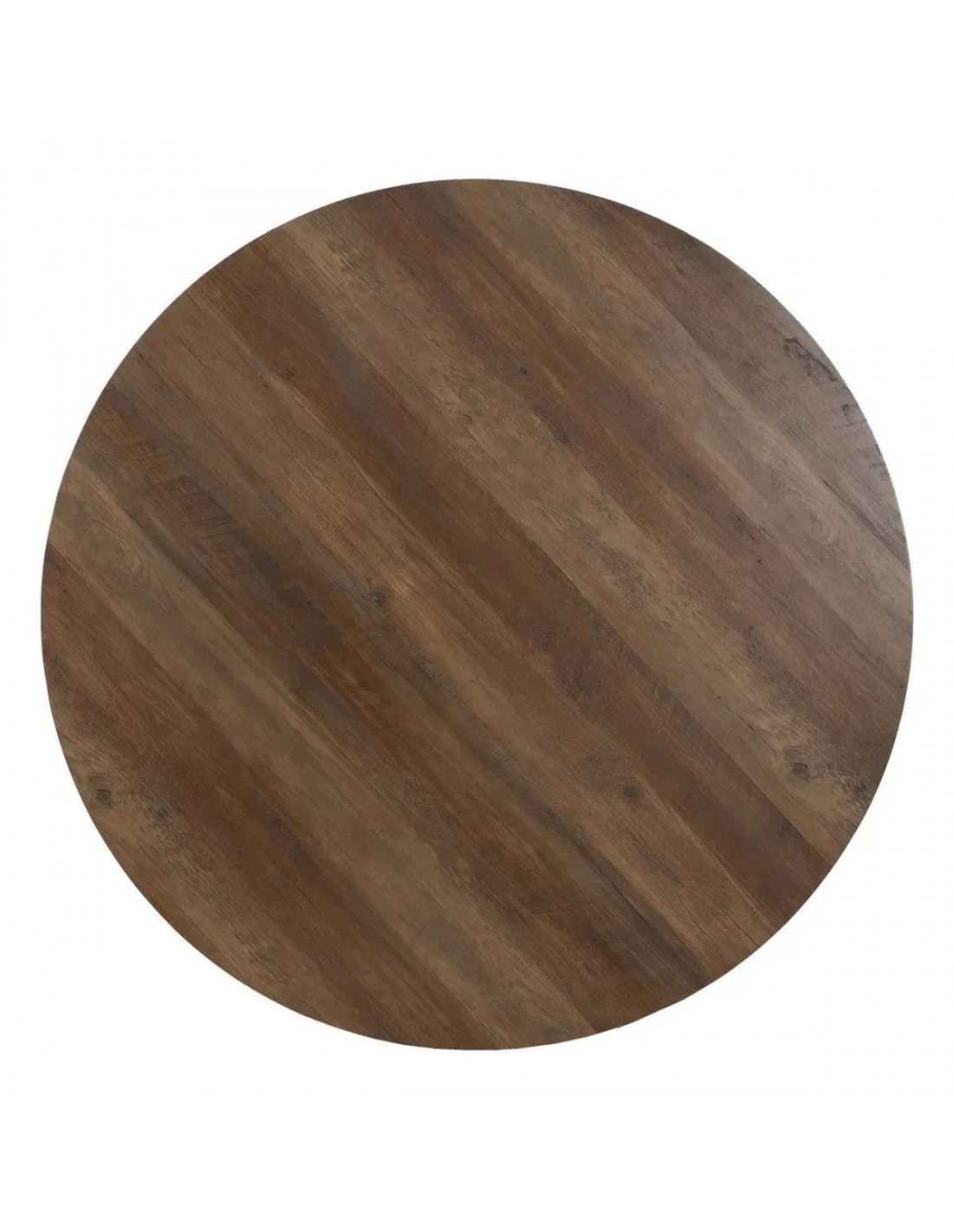 A Mesa Redonda BERNA distingue-se pela combinação equilibrada entre o tampo castanho em DM (painel de fibras de média densidade) e a base em metal preto. Esta fusão cria um visual industrial moderno, ideal para ambientes urbanos, lofts ou salas de jantar minimalistas. O formato redondo favorece o contacto visual e facilita a partilha, criando uma experiência de refeição mais acolhedora e envolvente.