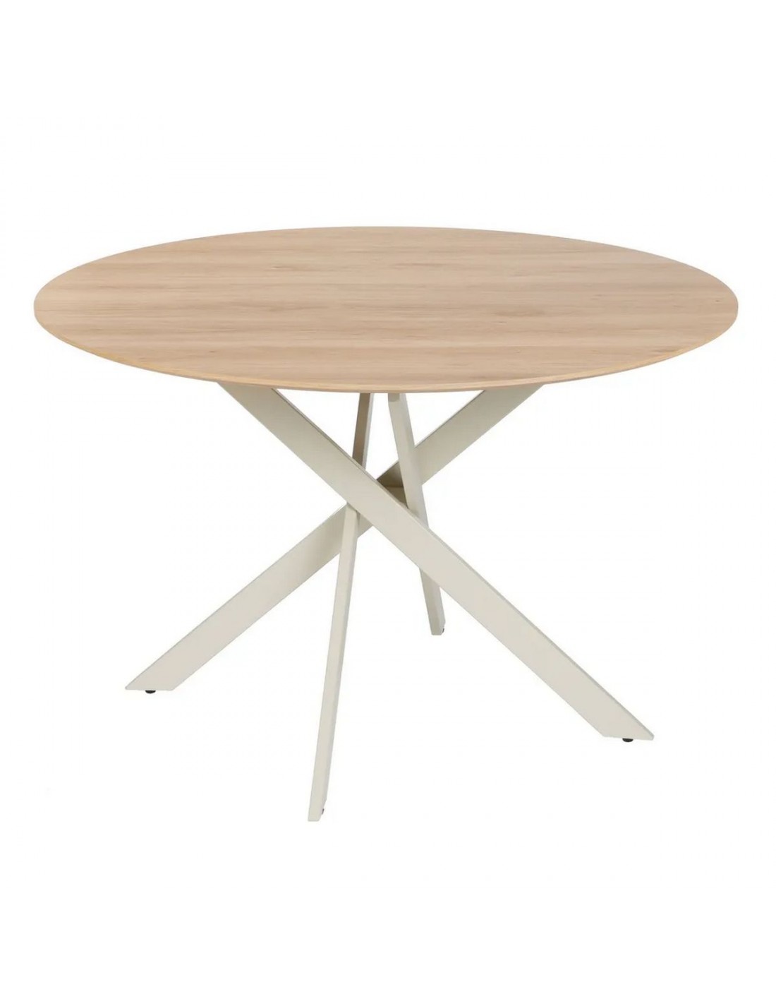 A mesa Ruth foi desenhada para espaços que valorizam a fluidez visual e o equilíbrio de cores. O seu design com pernas cruzadas em ferro pintado de creme traz dinamismo e elegância ao ambiente. O tampo em DM com 2 cm de espessura oferece uma textura uniforme em tom natural, perfeita para ambientes de inspiração nórdica, mediterrânica ou minimalista.