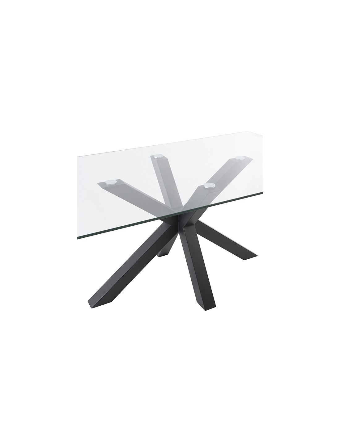Mesa de design ARGO 160x90, vidro e pernas de aço com acabamento preto
