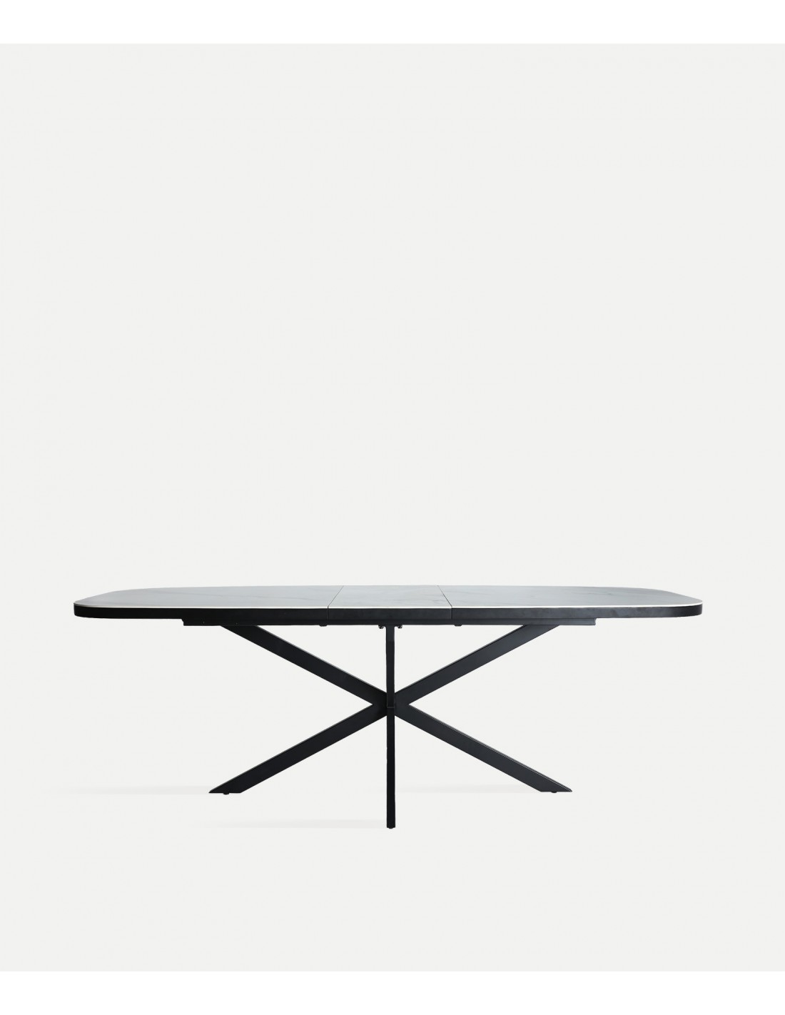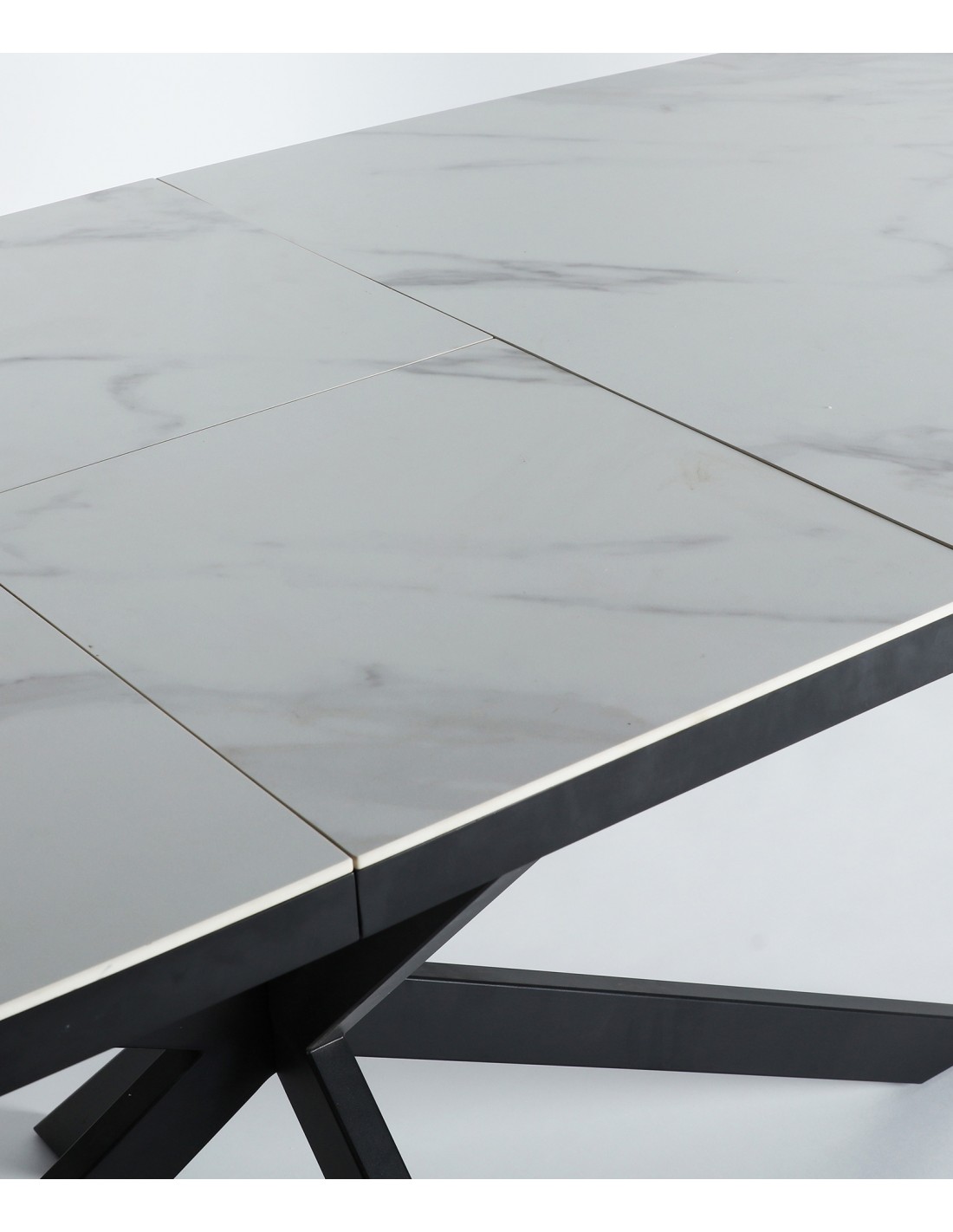 A mesa extensível DROUX é muito mais do que um móvel: é uma solução contemporânea e funcional que integra DM preto, cerâmica branca mate com veios cinza e uma base em ferro preto. O seu design foi pensado para quem valoriza estética moderna sem abrir mão da durabilidade e versatilidade.