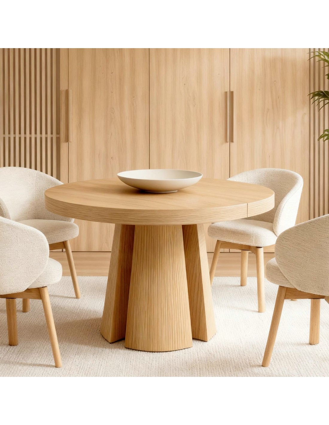 - Versatilidade diária e eventual: na versão de 120 cm funciona como uma mesa redonda confortável e acolhedora; ao estender‑se para 170 cm, transforma‑se no centro de celebrações e refeições com família ou amigos.