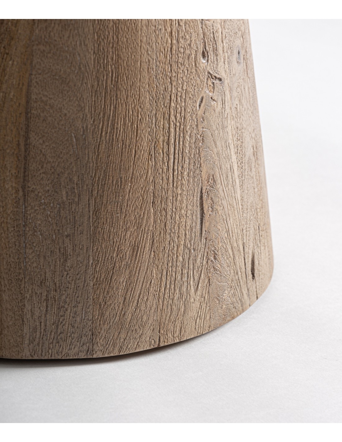 O terrazzo branco – famoso pela sua origem italiana e uso em arquitectura moderna – confere à superfície um aspeto artístico, enquanto a madeira de manga, de origem sustentável, garante robustez e um toque natural. Esta fusão estética transforma qualquer refeição num momento especial.