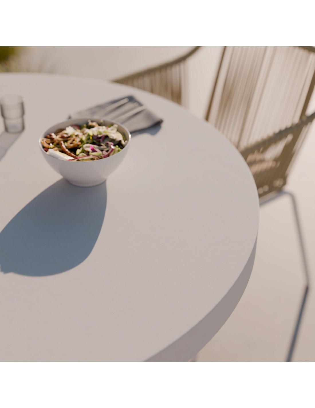 A Mesa redonda THELMA 120 cm em microcimento branco é a escolha perfeita para quem busca uma peça de impacto visual discreto, com durabilidade, estilo e equilíbrio. Leve para casa um símbolo do design contemporâneo com alma atemporal.