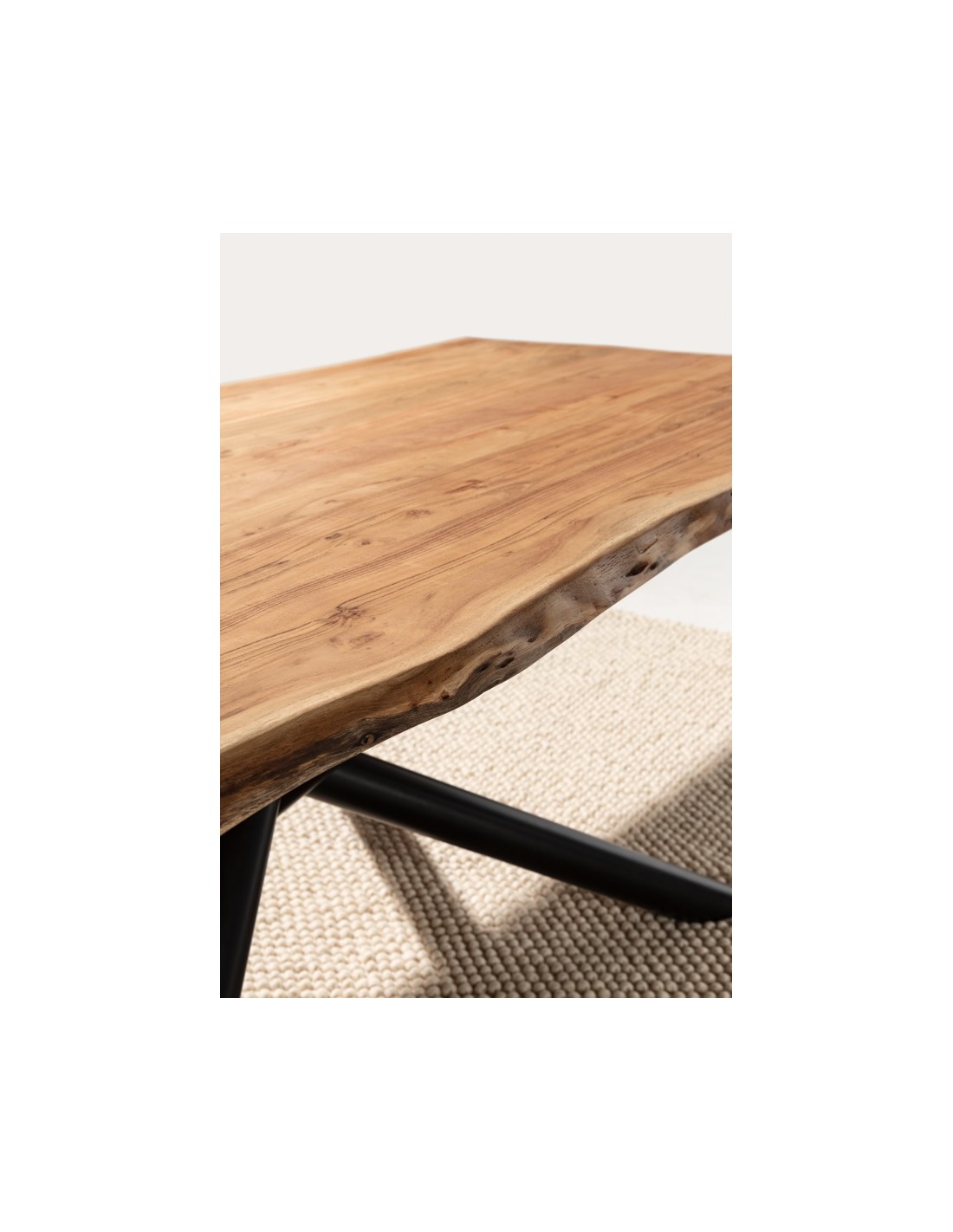 A combinação de madeira maciça de acácia e estrutura metálica segue uma das tendências mais fortes do design atual: a fusão entre natureza e indústria. Inspirada nos antigos lofts nova-iorquinos, esta estética acrescenta personalidade, contraste e equilíbrio visual.