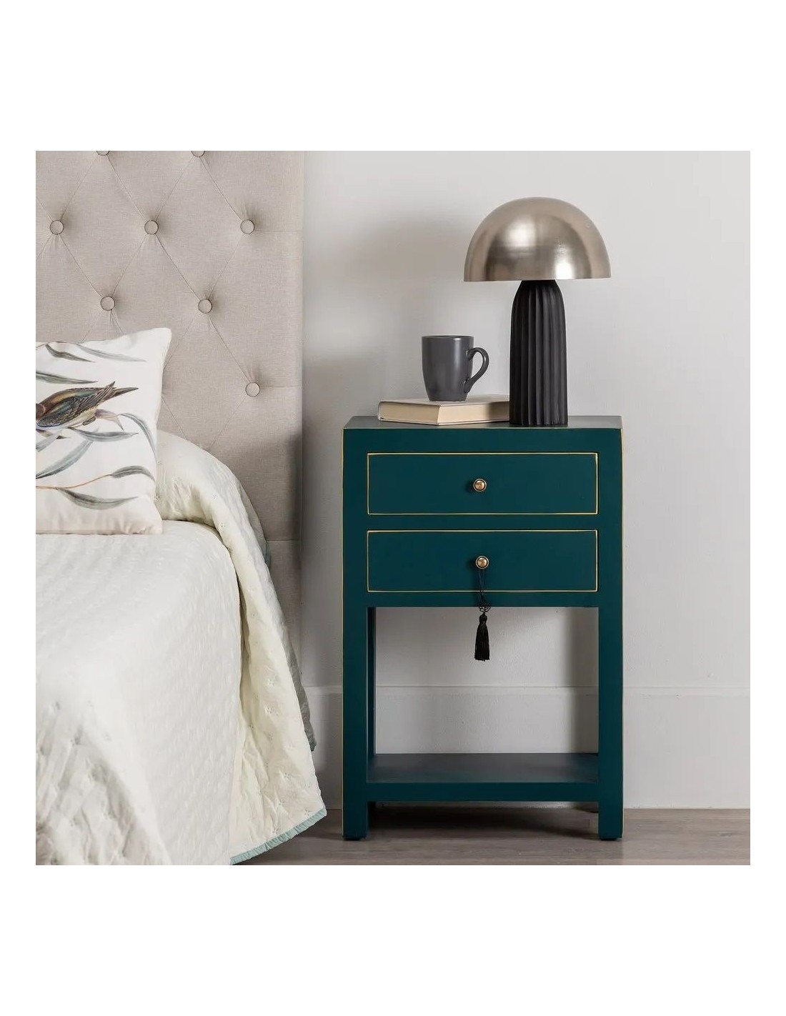 Mesa de cabeceira HANZO design oriental 45 x 30, azul, 2 gavetas.