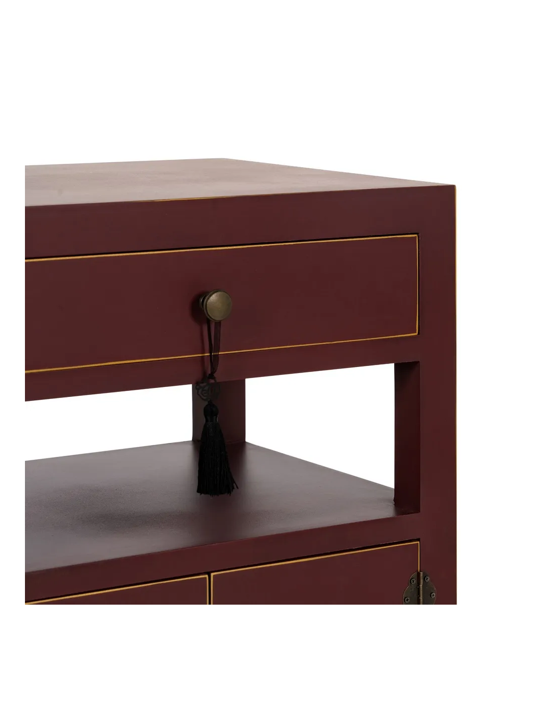 Mesa de cabeceira design oriental MING 50 x 40, teja, 1 porta e 1 gaveta.