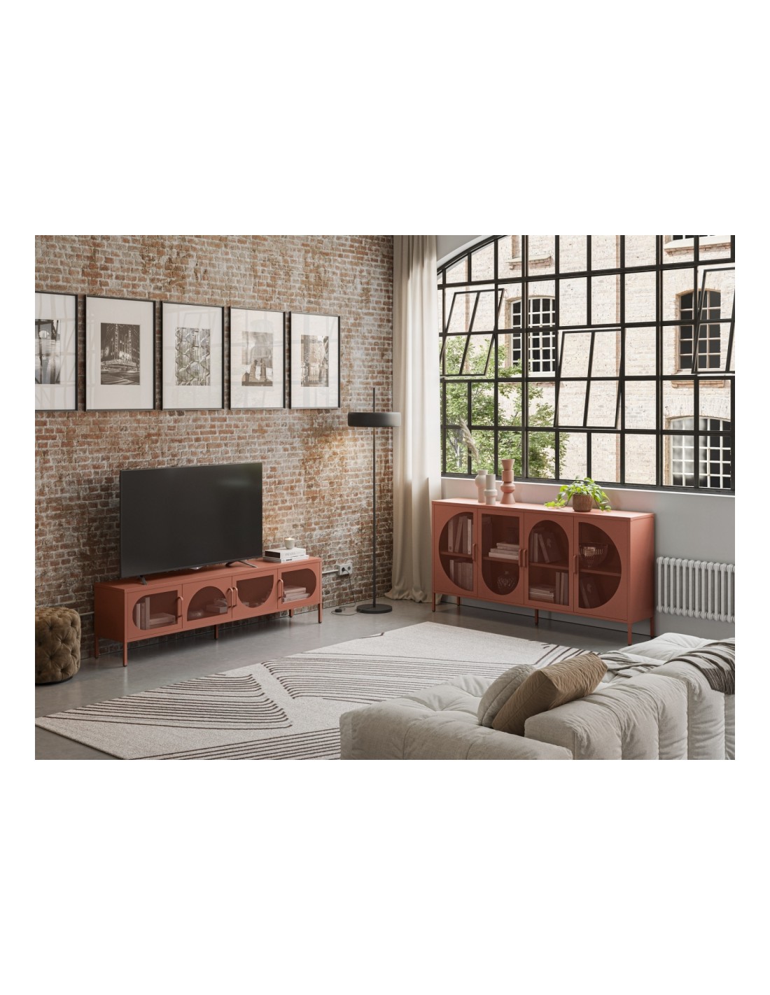 Aparador minimalista TAYRA em metal,terracota, 160 cm, com 4 portas