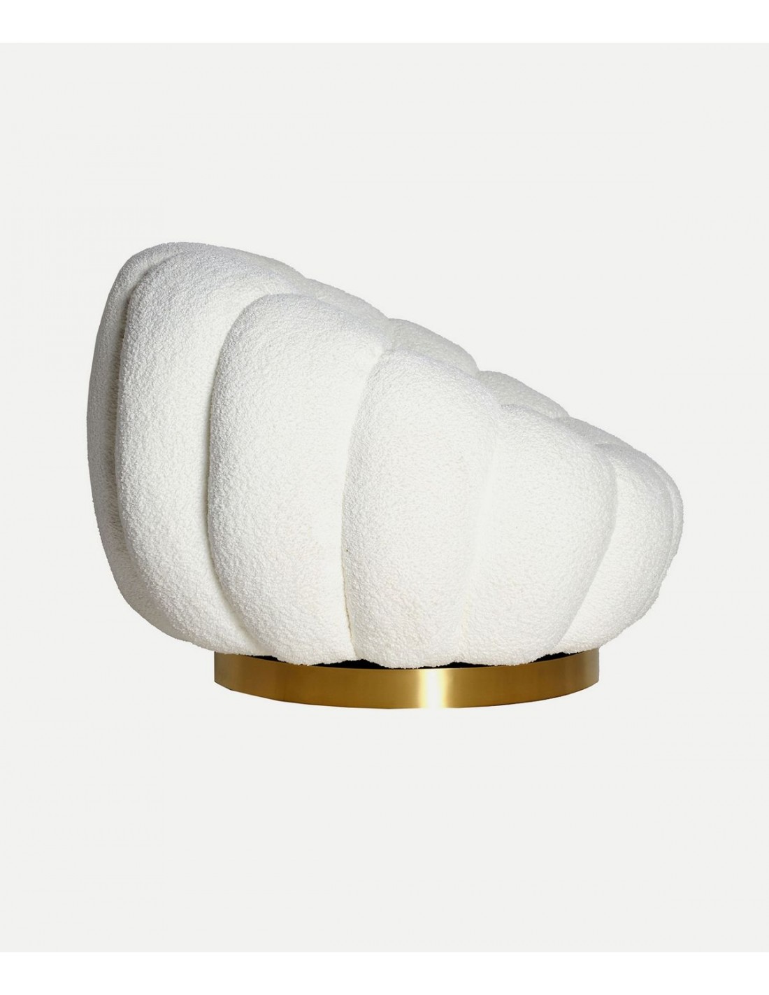 A poltrona giratória de design ergonômico BOUCLÉ CREST foi criada para transformar qualquer ambiente em um espaço sofisticado e acolhedor. Fabricada em algodão bouclé branco, destaca-se pela sua textura macia e moderna, enquanto a base metálica dourada giratória adiciona um toque de luxo inspirado no estilo art déco. Ideal para salas de estar, quartos ou espaços de leitura, esta peça alia conforto ergonômico e design exclusivo.