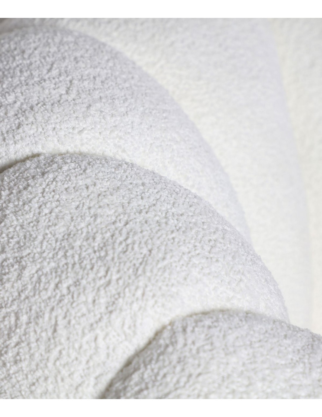 - Tecido bouclé branco: elegante, macio ao toque e resistente ao uso diário.