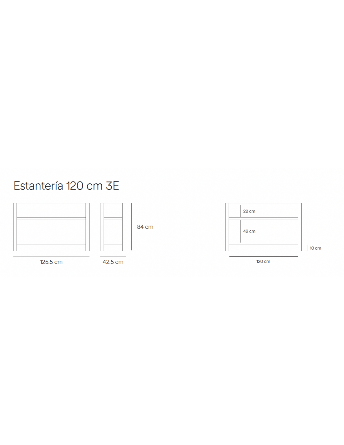 - Dimensões aproximadas: largura 125,5 cm, profundidade 42,5 cm e altura 84 cm.