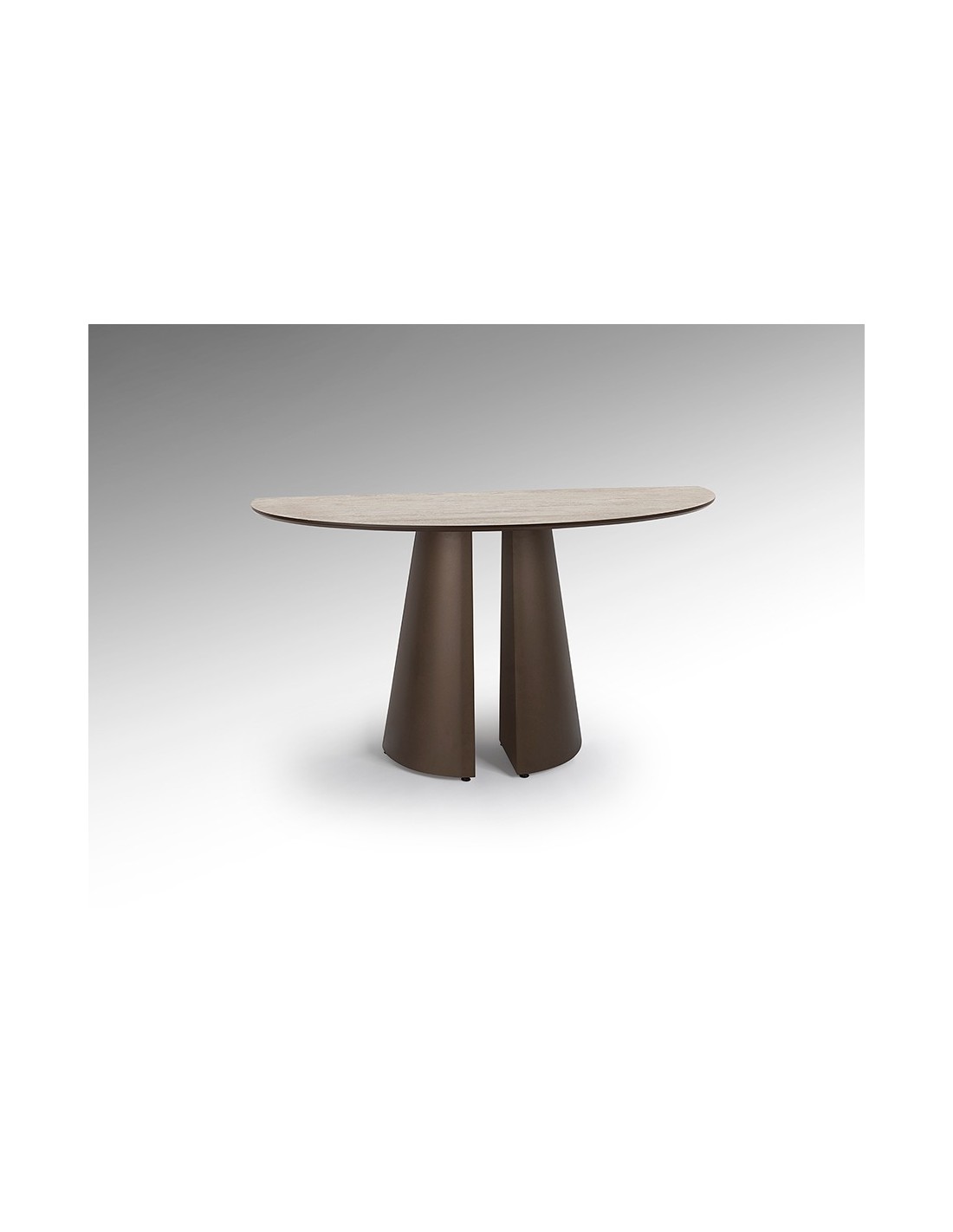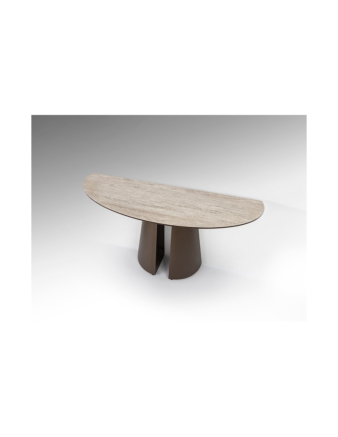 A consola SAMARA une dois mundos: o encanto mineral do travertino e a força visual do acabamento metálico castanho ferrugem. O resultado é uma peça funcional e com personalidade, ideal para quem busca elegância sem excessos.
