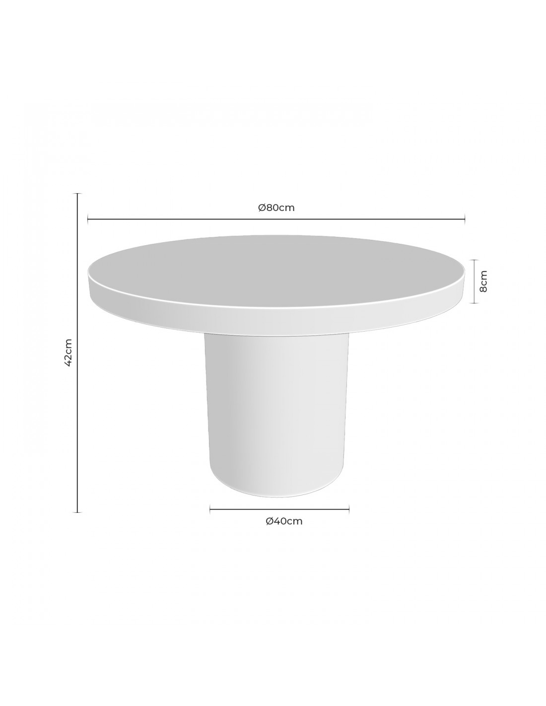- Presença arquitetónica: a base cilíndrica e o tampo espesso transmitem solidez e estabilidade.