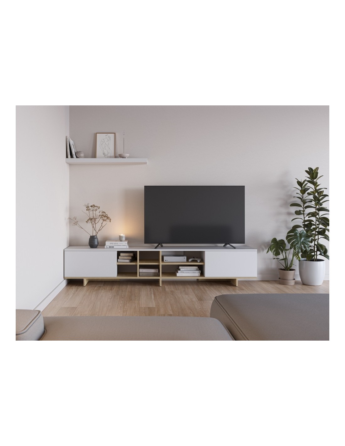 Móvel TV CEQUOIA 230 x 35, 2 portas 6 furos em branco e carvalho