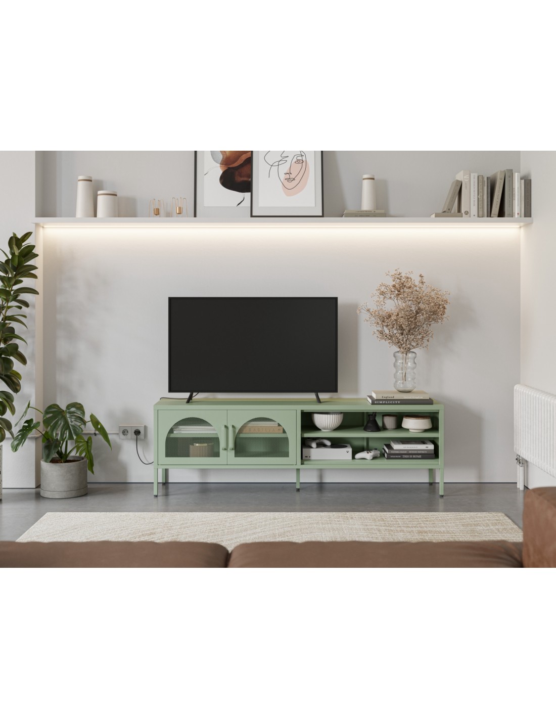 O móvel TV Diora é a escolha ideal para quem procura um equilíbrio entre design moderno e praticidade. Com uma largura de 160 cm e fabricado totalmente em metal, oferece uma presença marcante sem sobrecarregar o espaço. Perfeito para ambientes contemporâneos, urbanos ou minimalistas.