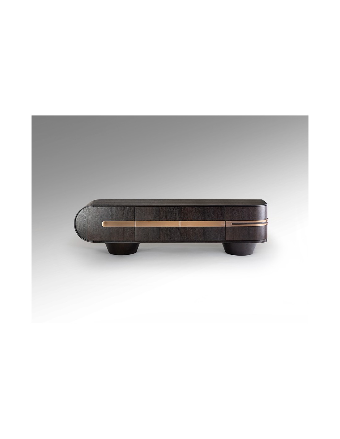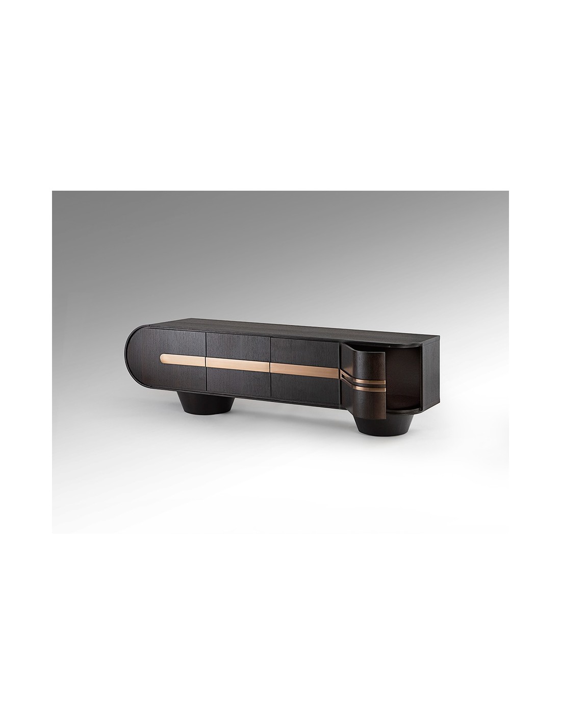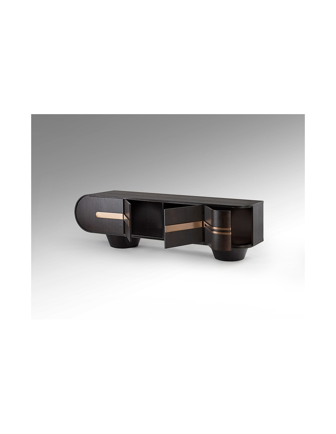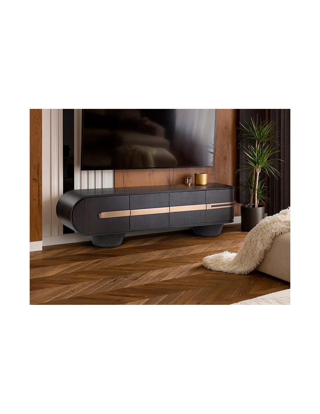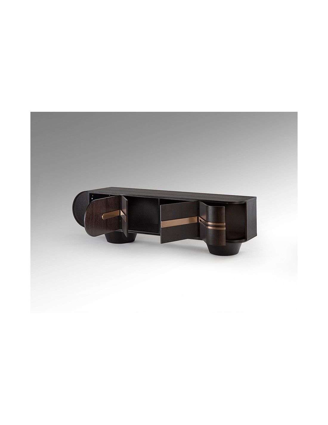 Móvel de TV 4 portas LUCA em carvalho escuro e aço ouro rosa