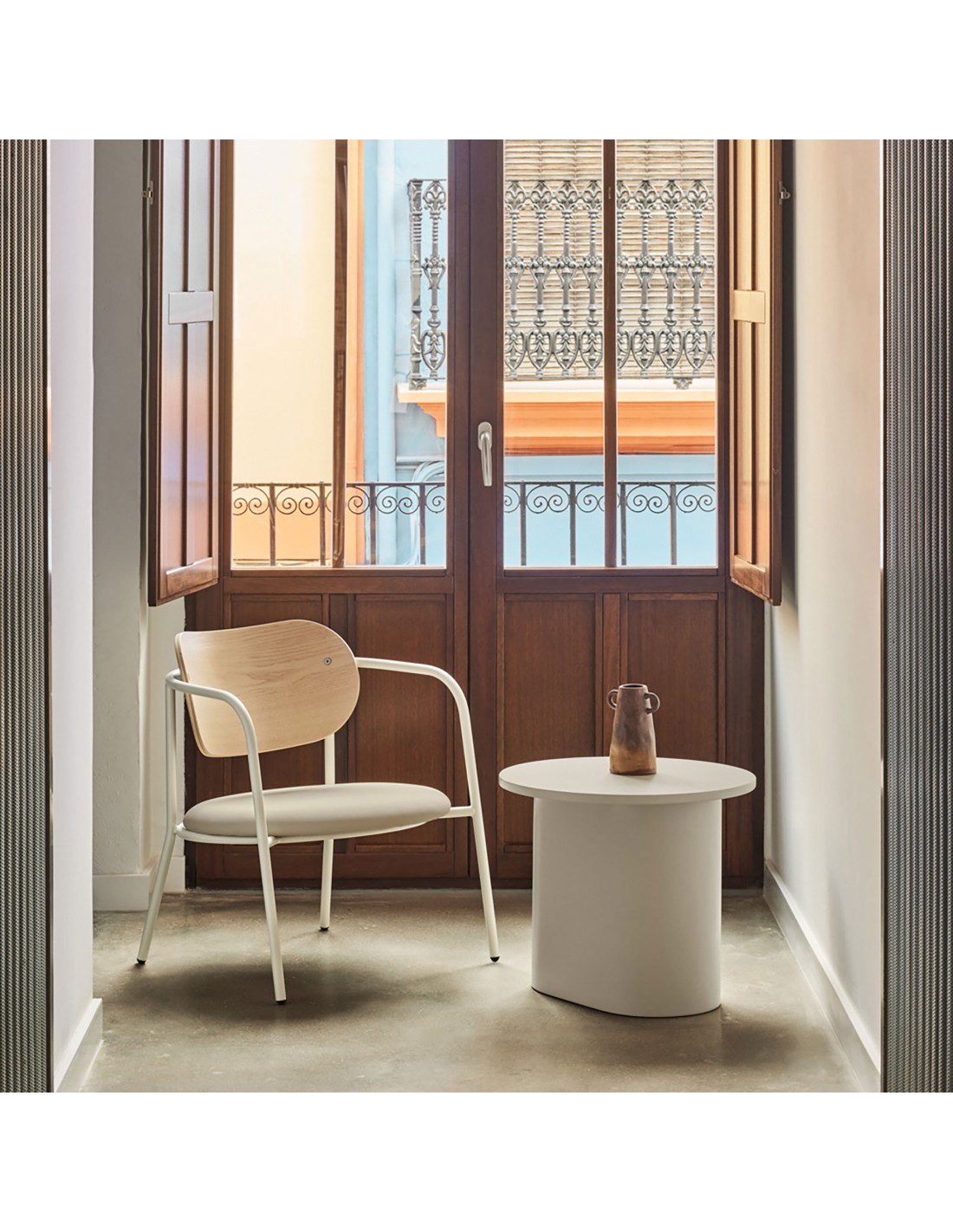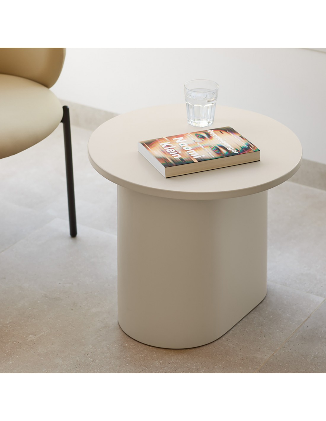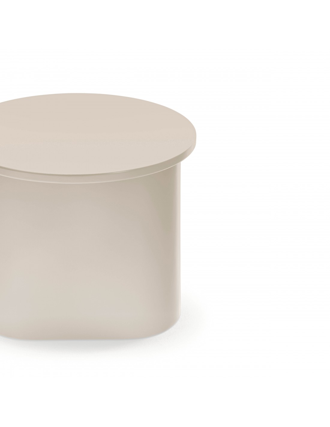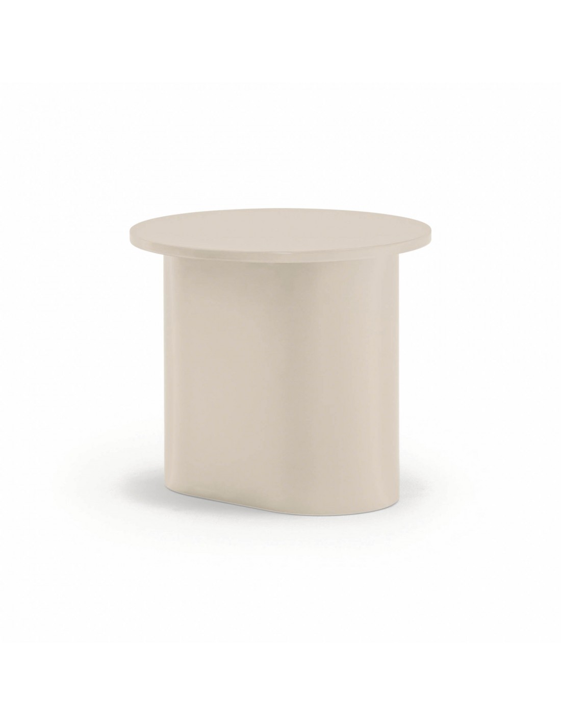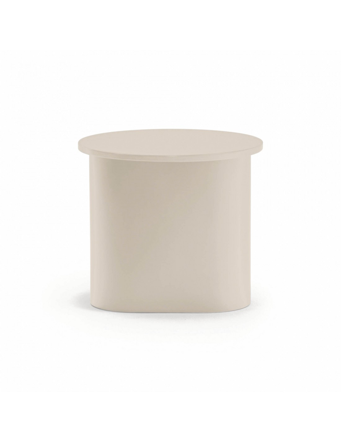 TOTEM, mesa de apoio cor de areia, de aspecto quase monolítico, Totem convida-nos a contemplá-la como se de uma obra de escultura se tratasse, transcendendo os limites entre a função e a forma. Cada uma das peças que compõem o móvel encaixam com precisão, dando origem a um volume limpo que assenta sobre um pedestal que forma o pé central.