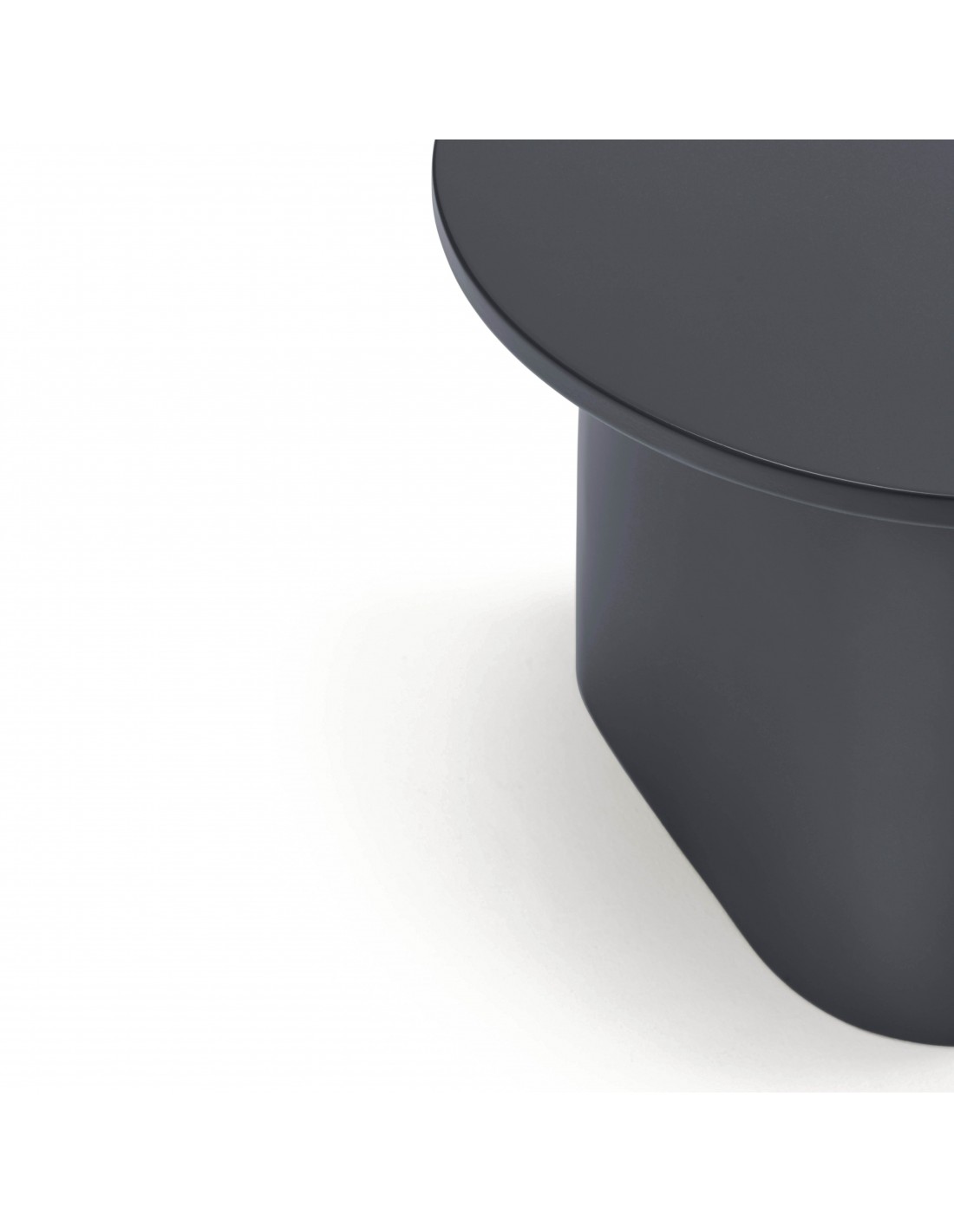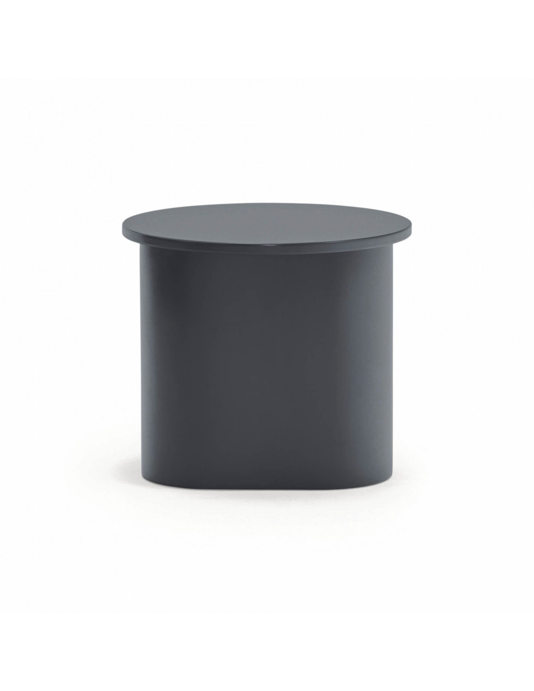 TOTEM, mesa de apoio cinzenta antracite, de aspecto quase monolítico, Totem convida-nos a contemplá-la como se de uma obra de escultura se tratasse, transcendendo os limites entre a função e a forma. Cada uma das peças que compõem o móvel encaixam com precisão, dando origem a um volume limpo que assenta sobre um pedestal que forma o pé central.