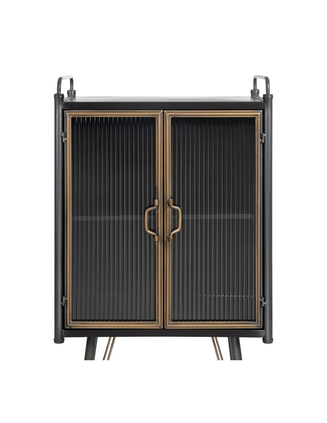 A vitrine Brick é uma peça sofisticada e funcional que se destaca pelo seu design industrial e elegante. Com dimensões de 58 cm de largura e 120 cm de altura, esta vitrine é construída em metal com acabamento preto e detalhes dourados, criando um contraste marcante e moderno. A vitrine possui duas portas de vidro, que não só protegem seus objetos do pó e do pó. danos, mas também permitem exibir suas coleções, livros, talheres ou outros itens decorativos de maneira elegante e ordenada.