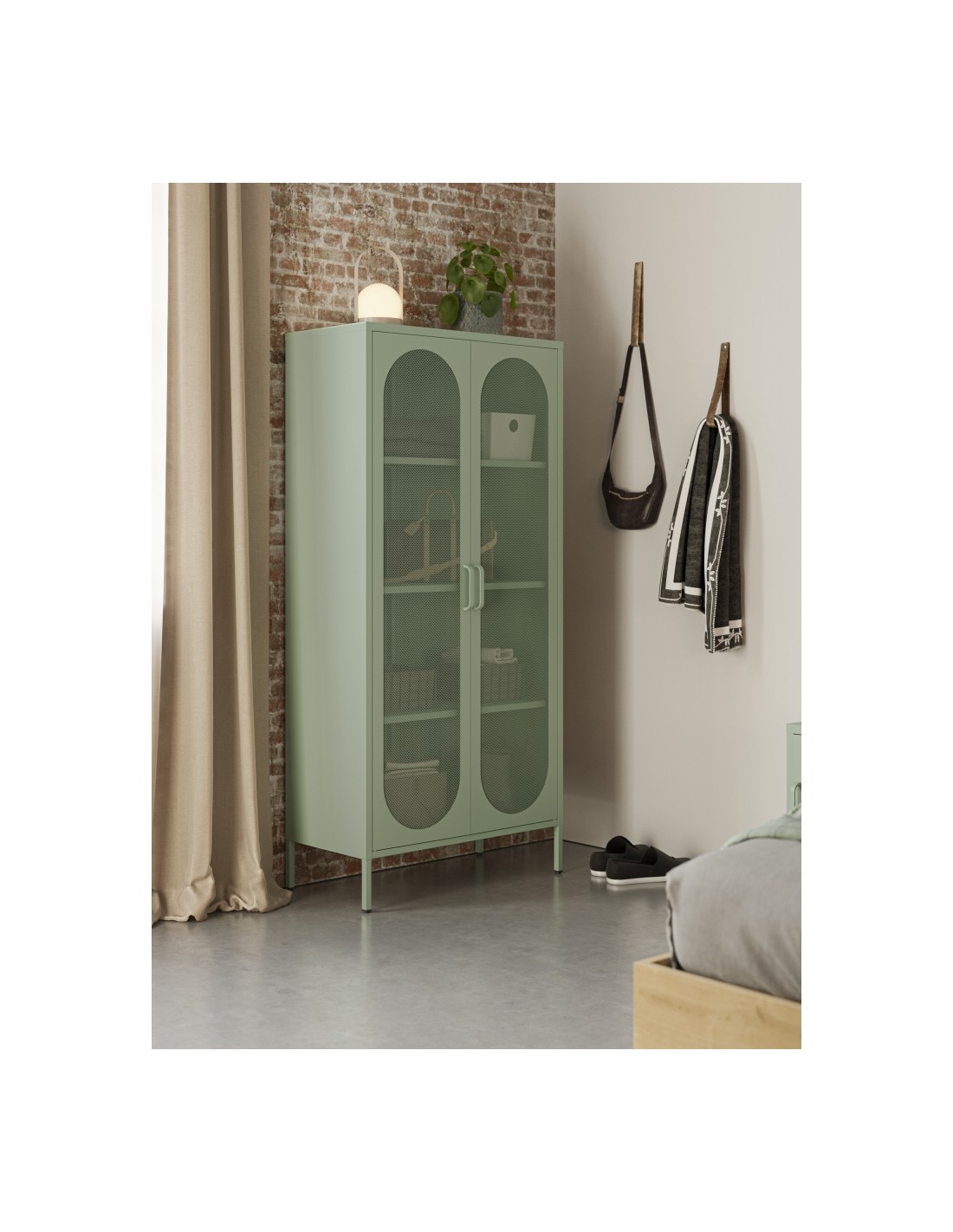 Vitrine minimalista DIORA em metal verde 80x170 com 2 portas